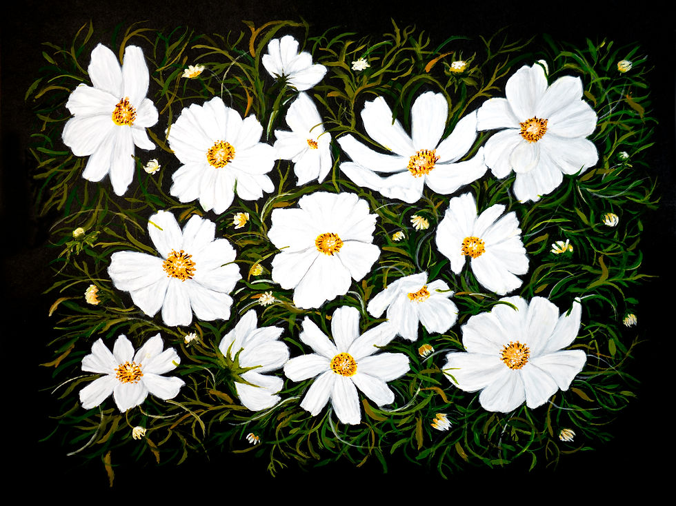 I enjoy painting distinct types of flowers. I love to see the differences in the colors of the leaves and blooms. Gouache paint is a medium I like to paint with as it allows me to use it as an acrylic or thin it out which is more transparent. This flexibility mirrors the layered complexity found in nature, inviting you to experiment with both vibrant intensity and subtle mood in a single artwork.